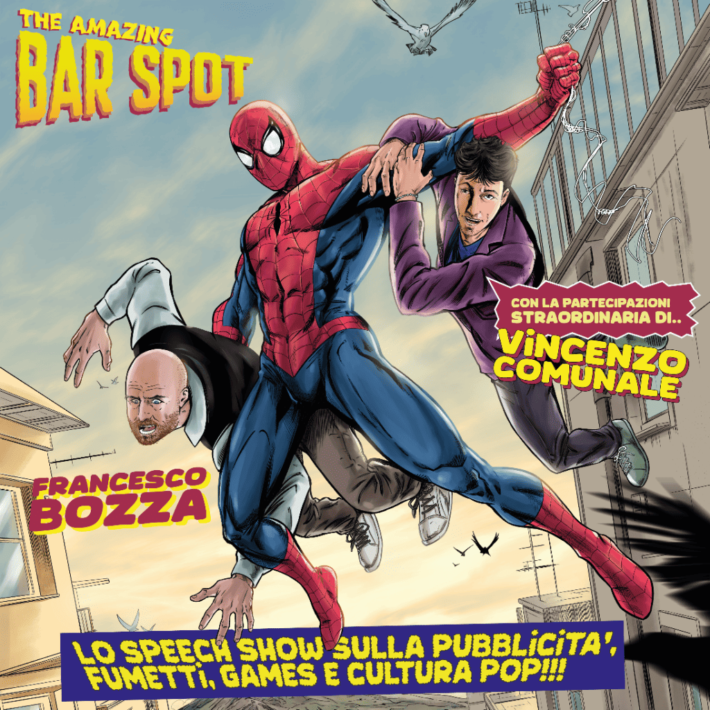 Direttamente dal palcoscenico di Zelig Milano, il tempio del cabaret italiano, arriva al COMICON di Napoli The Amazing Bar Spot, lo speech show sulla pubblicità ideato e condotto dal pubblicitario Francesco Bozza con la partecipazione straordinaria di Vincenzo Comunale. Uno spettacolo a metà strada tra divulgazione e stand up comedy, perfetto mix tra la visione di spot pubblicitari che hanno lasciato il segno nell’immaginario popolare, spesso inediti e mai visti in Italia, e il racconto delle loro storie curiose e sorprendenti. Uno show super pop, che per l’occasione sarà completamente dedicato alle tematiche del COMICON: dai fumetti dei supereroi ai manga giapponesi, dai videogames al mondo dei cosplayer.