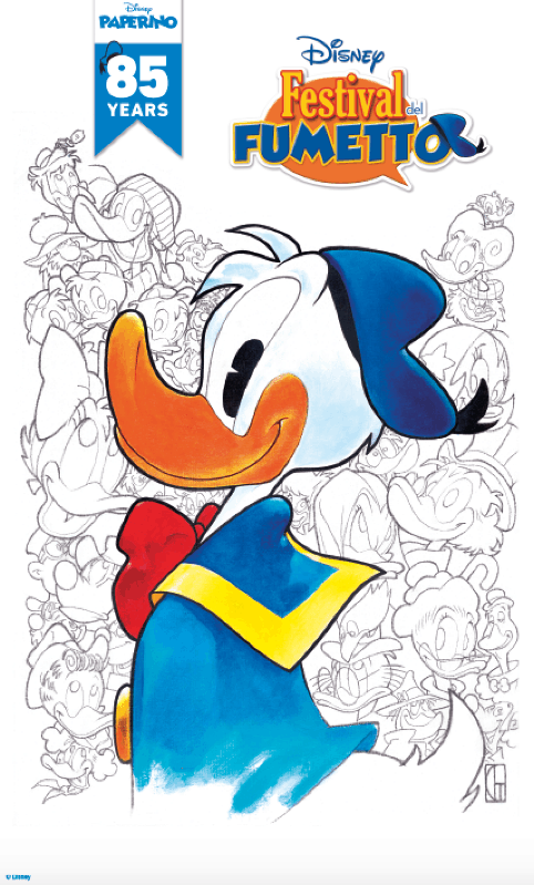 Il 9 giugno del 1934 nel cortometraggio “The Wise Little Hen“ (La Gallinella saggia), compariva per la prima volta Donald Duck, un vivace papero vestito alla marinara inizialmente destinato a un’apparizione in un singolo corto. Divertente, sfortunato, testardo, impaziente, talvolta romantico  Donald Duck, per noi Paperino, conquistò velocemente il pubblico di ogni età.   The Walt Disney Company Italia celebra il suo 85° anniversario con il “Festival del Fumetto Disney” realizzato in collaborazione con Mondadori Store e che prevede nel mese di maggio dieci incontri in una selezione di librerie Mondadori con alcuni tra i più noti disegnatori Disney. Gli appassionati lettori di fumetti Disney potranno così incontrare Giorgio Cavazzano, Silvia Ziche, Corrado Mastantuono,  Francesco D’Ippolito, Claudio Sciarrone, Paolo Campinoti, Stefano Intini, Francesco Guerrini ed Emilio Urbano. Con questa iniziativa, Disney Italia vuole sottolineare il contributo al personaggio di Paperino da parte di tanti artisti italiani del fumetto noti anche all’estero. “Festival del Fumetto Disney” può vantare una locandina davvero speciale, un inedito ritratto di Paperino realizzato dal Maestro Cavazzano.