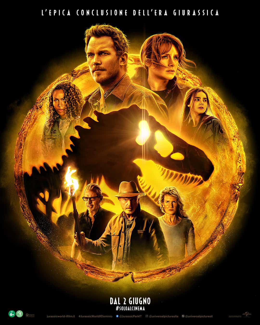 Jurassic World – Il Dominio, di Universal Pictures e Amblin Entertainment, spinge il franchise da oltre 5 miliardi di dollari in un territorio audace e inesplorato, caratterizzato da dinosauri mai visti, azione vertiginosa e nuovi sorprendenti effetti visivi.